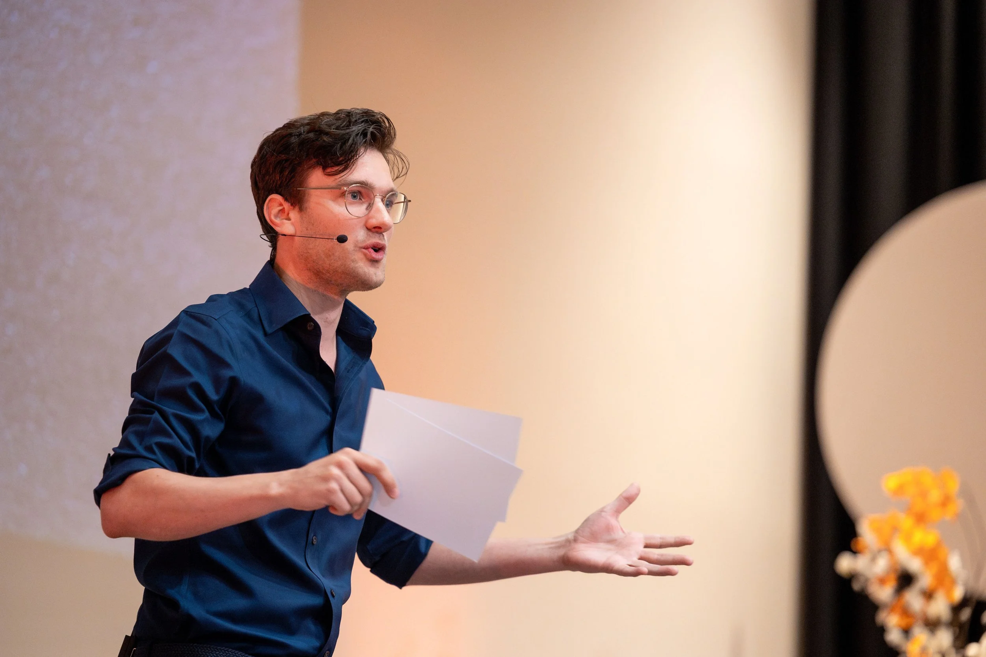 Zijn aanpak draait om balans. Inhoud moet scherp zijn, maar ook toegankelijk. Energie moet voelbaar zijn, zonder dat het oppervlakkig wordt. Door die balans blijft het publiek betrokken en krijgen sprekers de ruimte om hun verhaal echt over te brengen.
